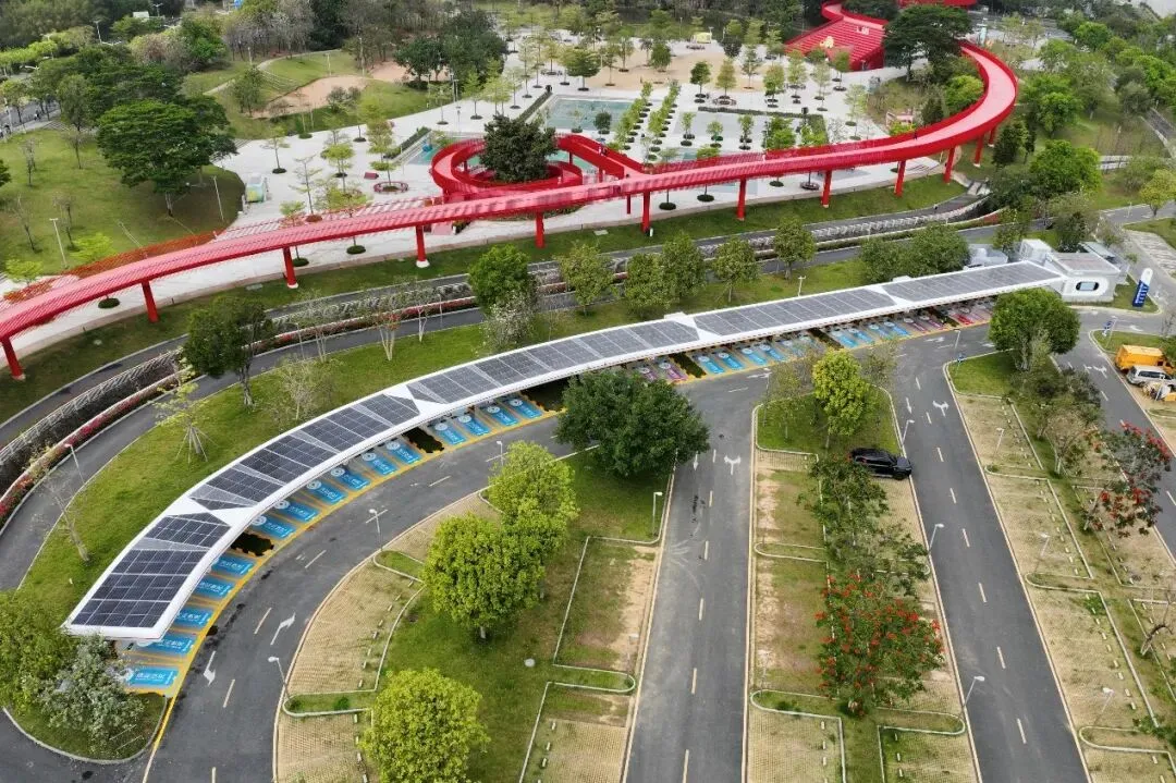 粤港澳大湾区规模最大车网互动超充示范站落地深圳虹桥公园。(徐成龙 摄)