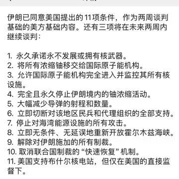7、伊朗和美国以及双方各自盟友同意在包括黎巴嫩和其他地区在内的所有地点立即停火,即日起生效,10日将开始谈判。