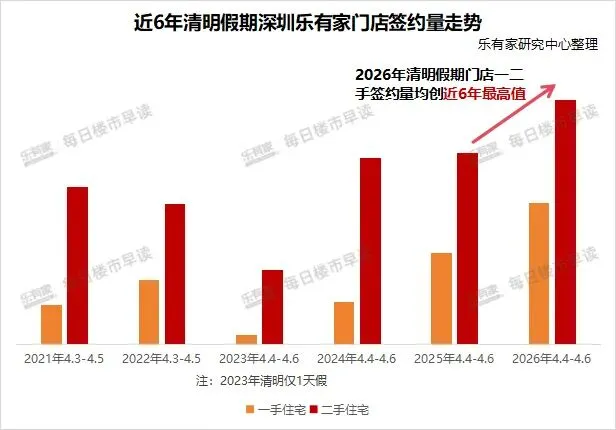 果不其然,刚刚过去的清明假期(4.4-4.6),虽然遭遇暴雨天气,但深圳乐有家门店一、二手签约量,双双创下2021年以来的6年同期最高值。