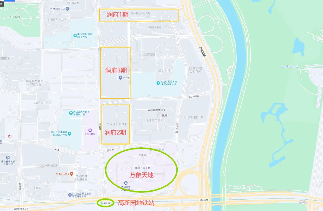 比如华润城润府1-3期,润府2期相当于“T+0”:下楼过马路就是网红商业万象天地,人流和车流很多;润府3期相当于“T+1”:距离万象天地、高新园地铁口都在1km以内;润府1期相当于“T+2”:距离商业、地铁口相对较远。