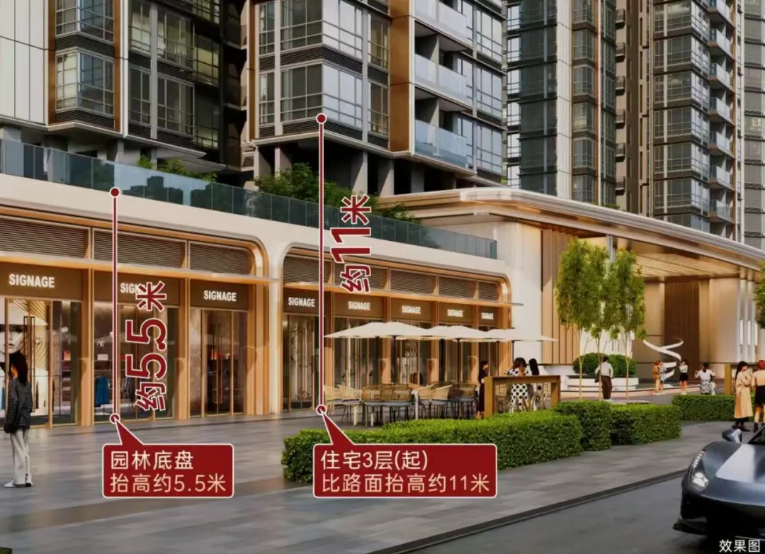 围合式建筑布局+整体抬高约5.5米的设计,让渡出更加完整的园林空间、更加私密的园林氛围。
