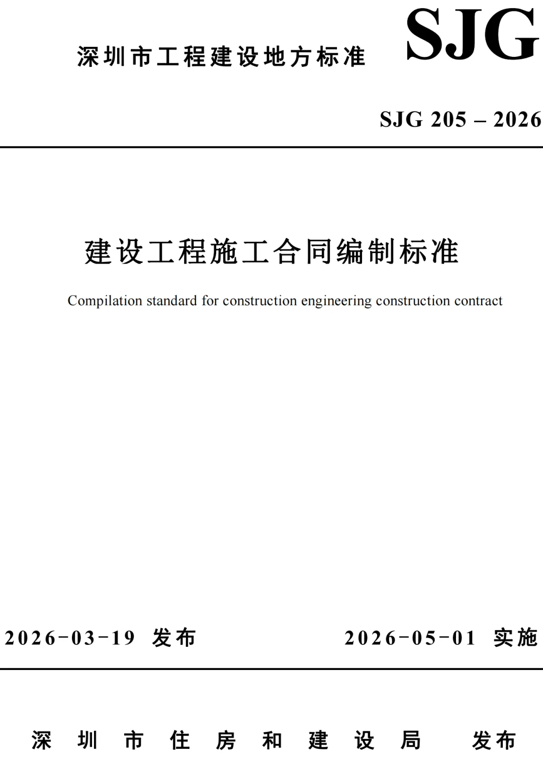 深圳住建局发布《建设工程施工合同编制标准》,自2026年5月1日起施行丨建领法讯