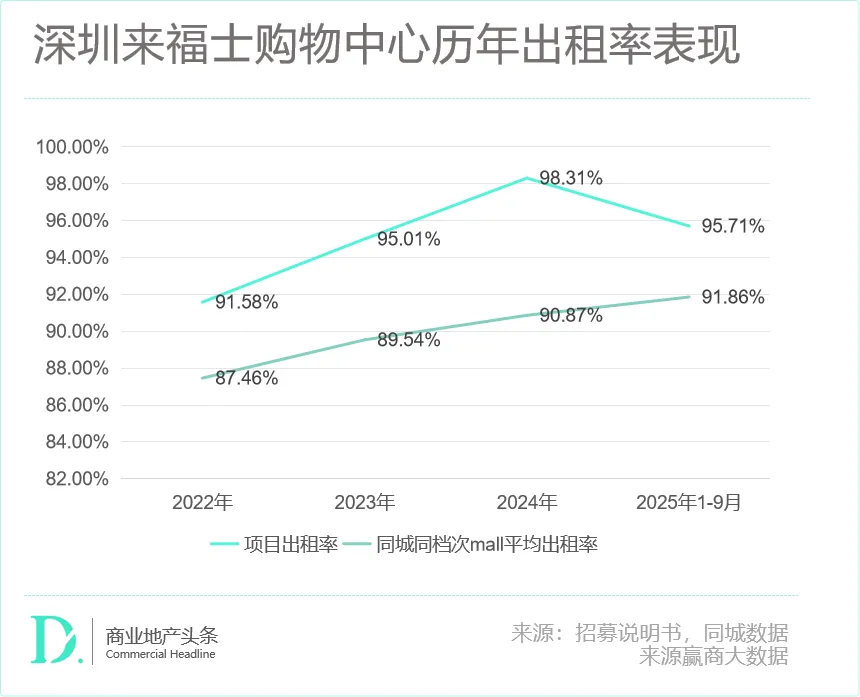 2022年至2025年1-9月平均出租率分别为91.58%、95.01%、98.31%、95.71%,居全城同档次mall上游水平。