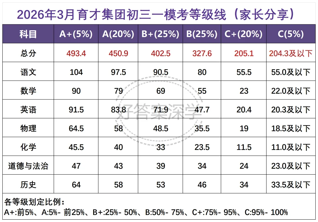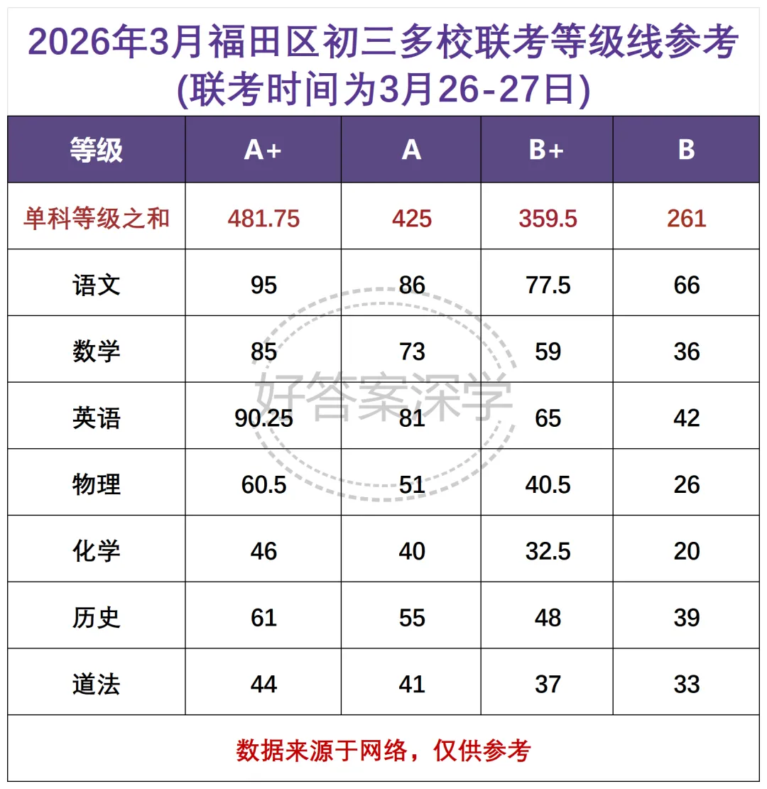 A+线458.5!2026年深圳九下34校联考等级线出炉!
