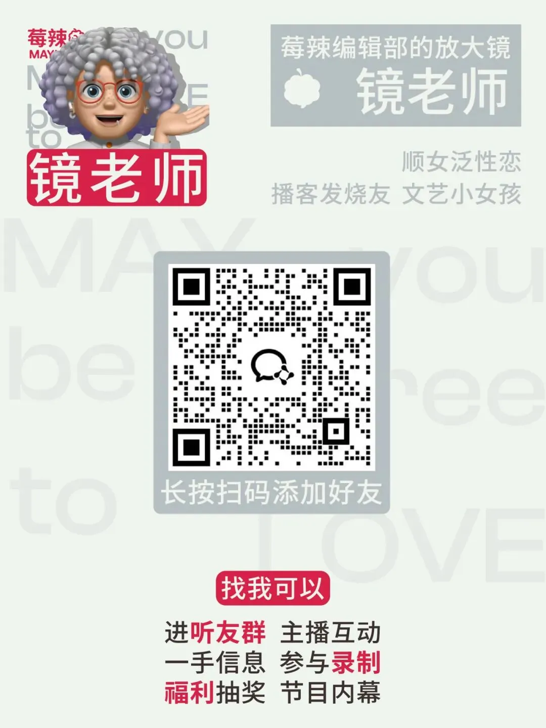 别忘了加我们的好友,加入我们的社群!莓辣的线下活动会在社群内优先购票!
