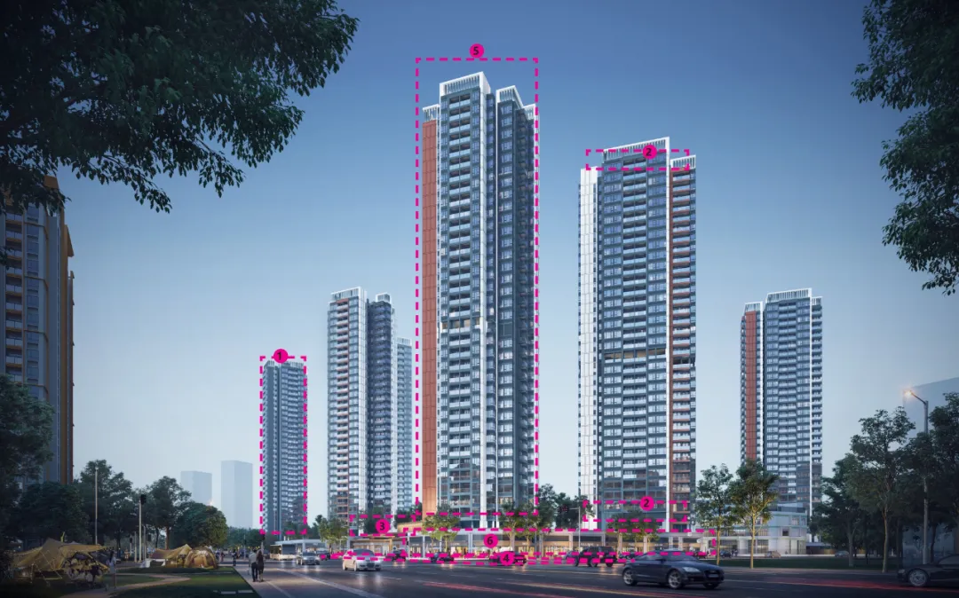 天健瑞云府,由天健集团+深福保+深高新集团3家国企联合打造,总占地面积约3.6万㎡,总建筑面积约22.49万㎡,计容建筑面积约16.46万㎡,容积率4.75,绿化率30%,共由8栋32-36层高住宅组成,分3个地块开发,不过花园都是共享连通在一起的,其中1栋1单元/2栋2单元/3栋1单元住宅33F,1栋2单元/2栋1单元/3栋2单元住宅32F,2栋3单元/2栋4单元住宅36层,4栋是1所9班制幼儿园。