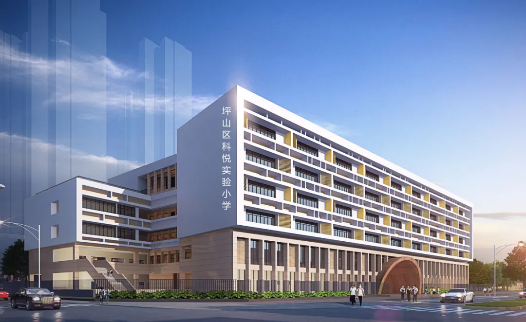 深圳实验坪山学校,总用地面积3.87万平方米,总建筑面积7.91万平方米,为54班九年一贯制学校,可提供2520个学位,2024年首次招生。