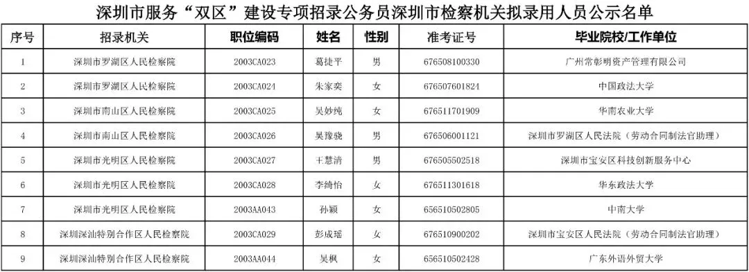 公示期满,未发现有不予录用情形的,将按规定申报办理录用手续。最终是否录用,以中共深圳市委组织部的录用文件为准。