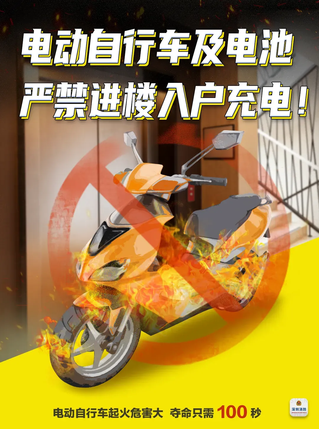 第四十八条禁止电动自行车、电动摩托车及其蓄电池在下列地点停放、放置或者充电:(一)公共门厅、楼梯间、电梯轿厢;(二)用于居住、办公等人员聚集的室内场所以及其他不符合消防安全条件的室内场所;(三)法律、法规规定禁止停放、放置、充电的其他地点。