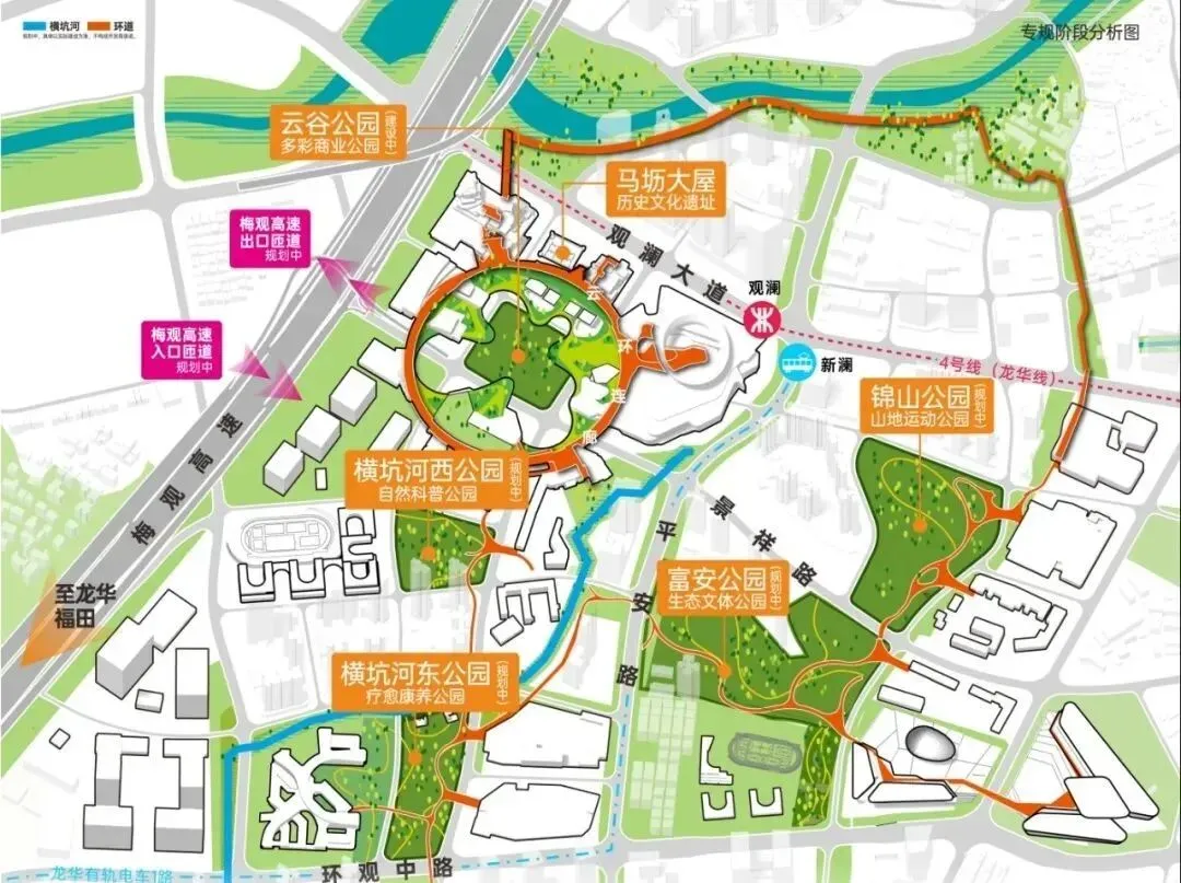 规划面积16.96平方公里,观澜湖,版画村,观澜古墟,牛湖水、观澜河两条水系交汇,打造深圳文化地标和国际数字文化示范小镇。