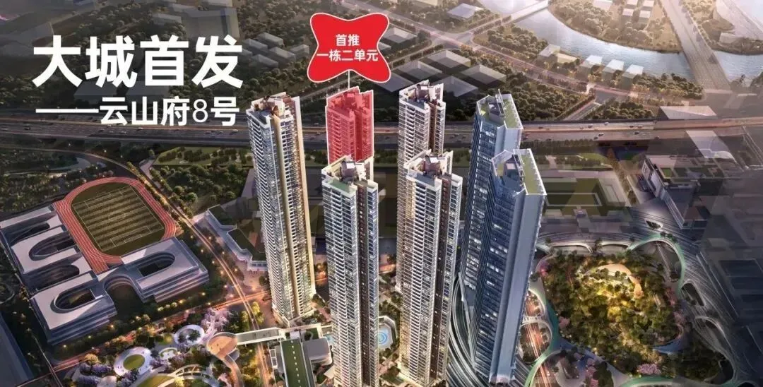本次首推的08地块,备案名:未来平方云山府,由鸿荣源集团打造,共分3期建设,总占地面积约2.73万㎡,总建筑面积约37.41万㎡,计容建筑面积约27.51万㎡,容积率9.23,绿化率32.01%,共由5栋58-59层高住宅组成,其中1栋1单元住宅59F,1栋2/3单元住宅58F,3栋1单元/2单元住宅58F,4栋1/2单元写字楼35F,2栋是1所18班幼儿园,配建有公交首末站,总规划1566户,全部都是商品房。