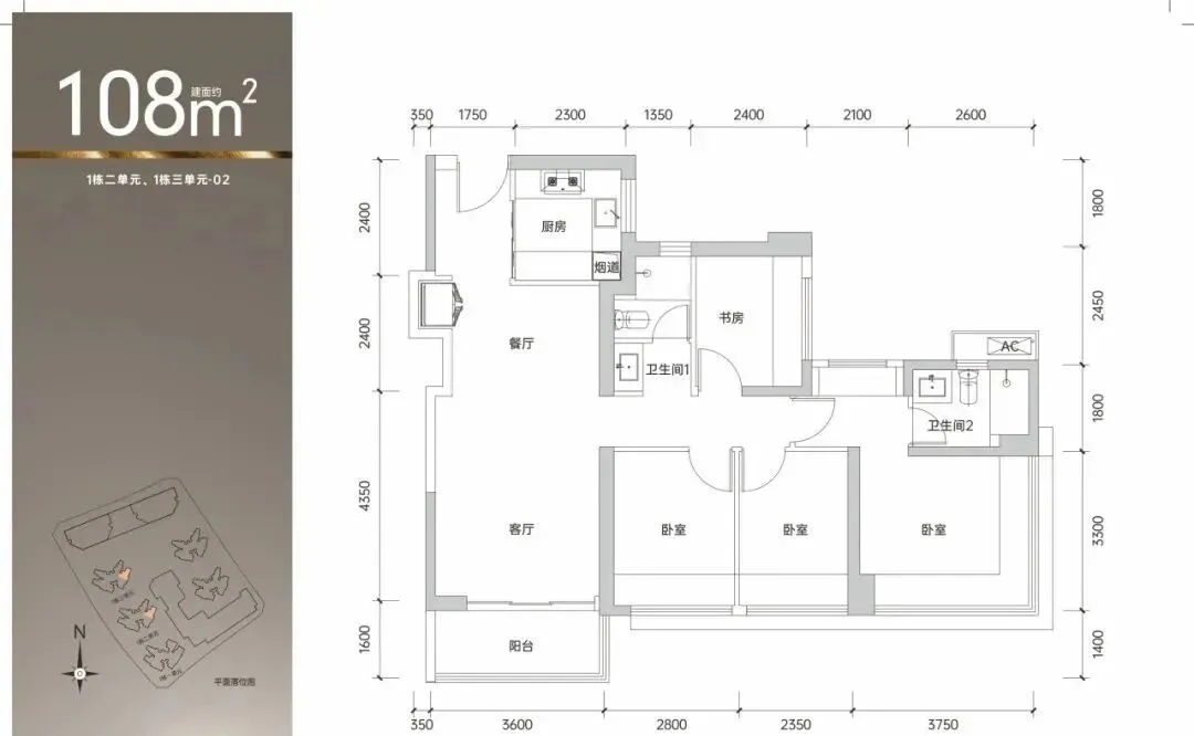 108㎡的4房2厅2卫,1栋2/3单元02/1栋1单元06户型,设计的是经典竖厅格局,客厅3.6米开间,四开间朝南,动静分区,4个卧室分别做到了主卧16.2㎡/次卧9.24㎡/次卧7.76㎡/次卧7.32㎡(包含墙体飘窗),得房率约90%(包含赠送),东南或西南朝向。
