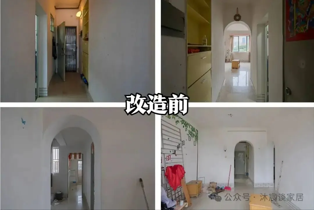 改造前,它就是典型的老房尴尬区:又长又暗,利用率低,一开门还直冲客厅,隐私几乎没有缓冲。