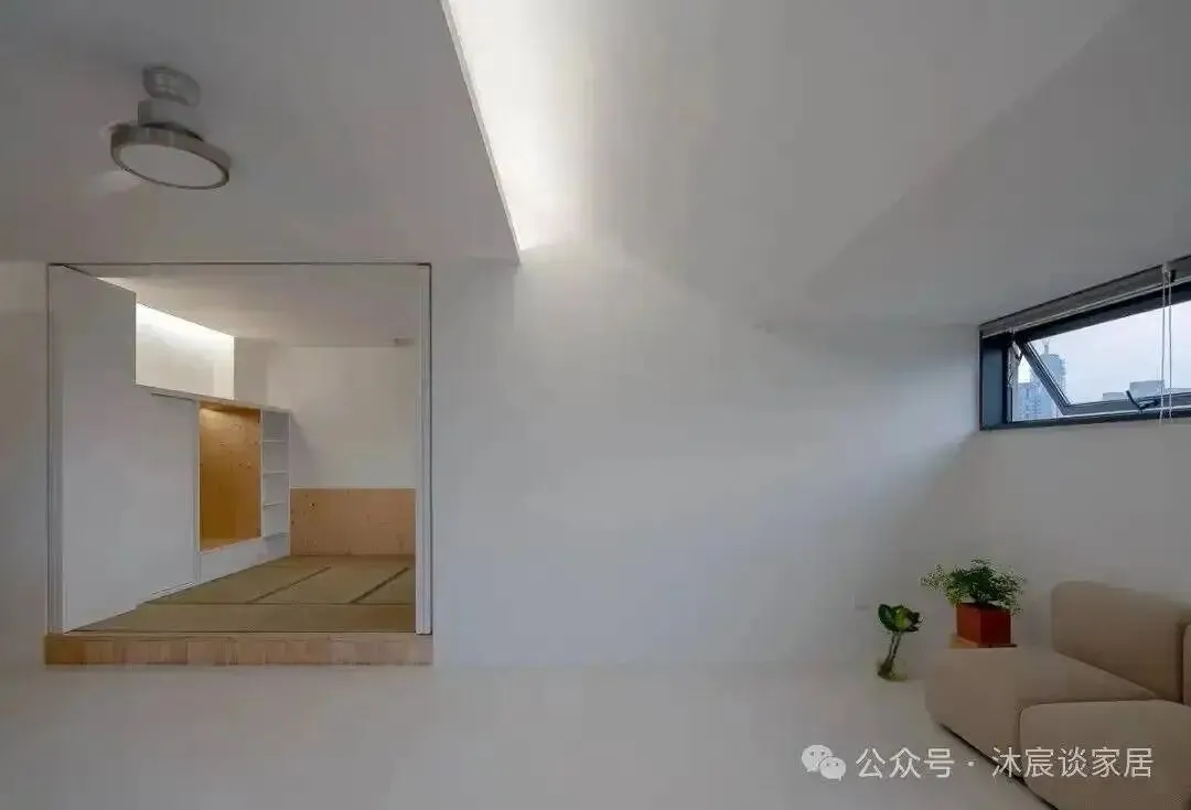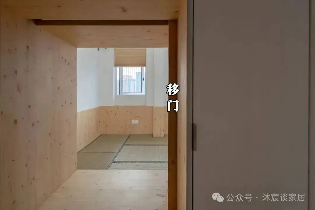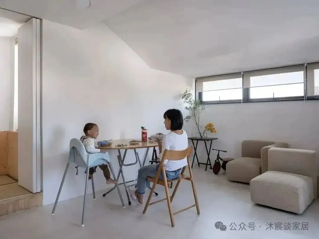 更绝的是,鞋柜旁的小洞里还藏着一扇移门。白天收进去,光和风都能借进来;晚上拉上,又能把儿童区变成一个相对独立的小房间。