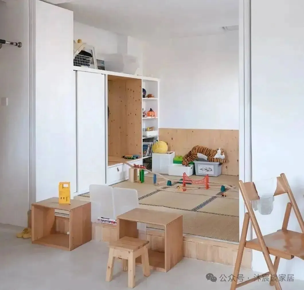 榻榻米和储物已经预埋好,将来长大了随时切换成卧室。也就是说,这不是一个“此刻最满”的房间,而是一个“未来可升级”的房间。