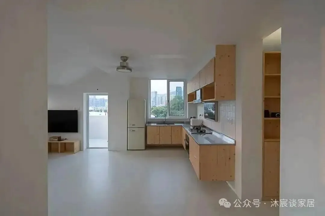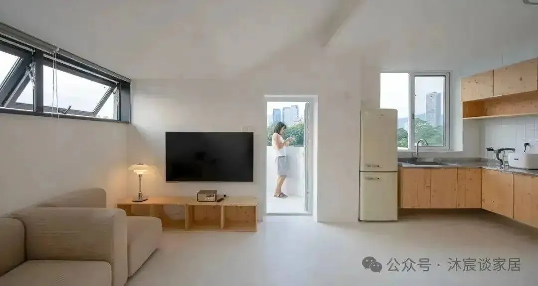现在很多小户型都喜欢把阳台全包进室内,试图换来一点“表面积”。但这家留住了阳台的开放属性,让它继续承担自然、通风和情绪价值。