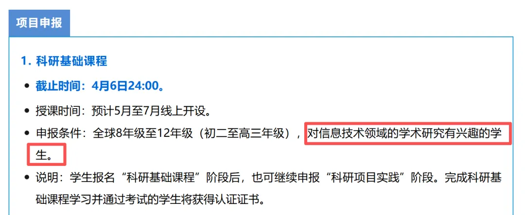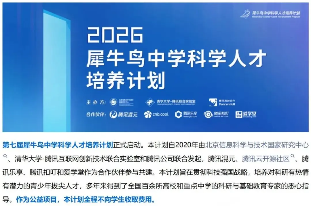 另一个是“犀牛鸟计划”,更牛。清华和腾讯联合办的,分基础班和项目班。想进项目班?信奥赛、科创赛、机器人大赛的奖项就是“敲门砖”。