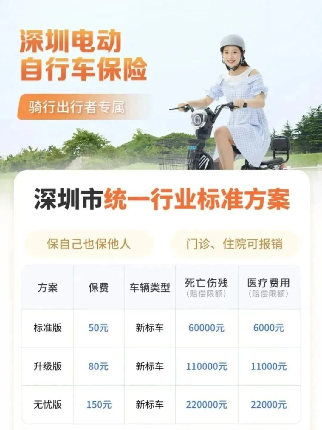深圳电动自行车保险:包含三者人伤责任、车上人员责任、驾驶人员意外伤残医疗责任