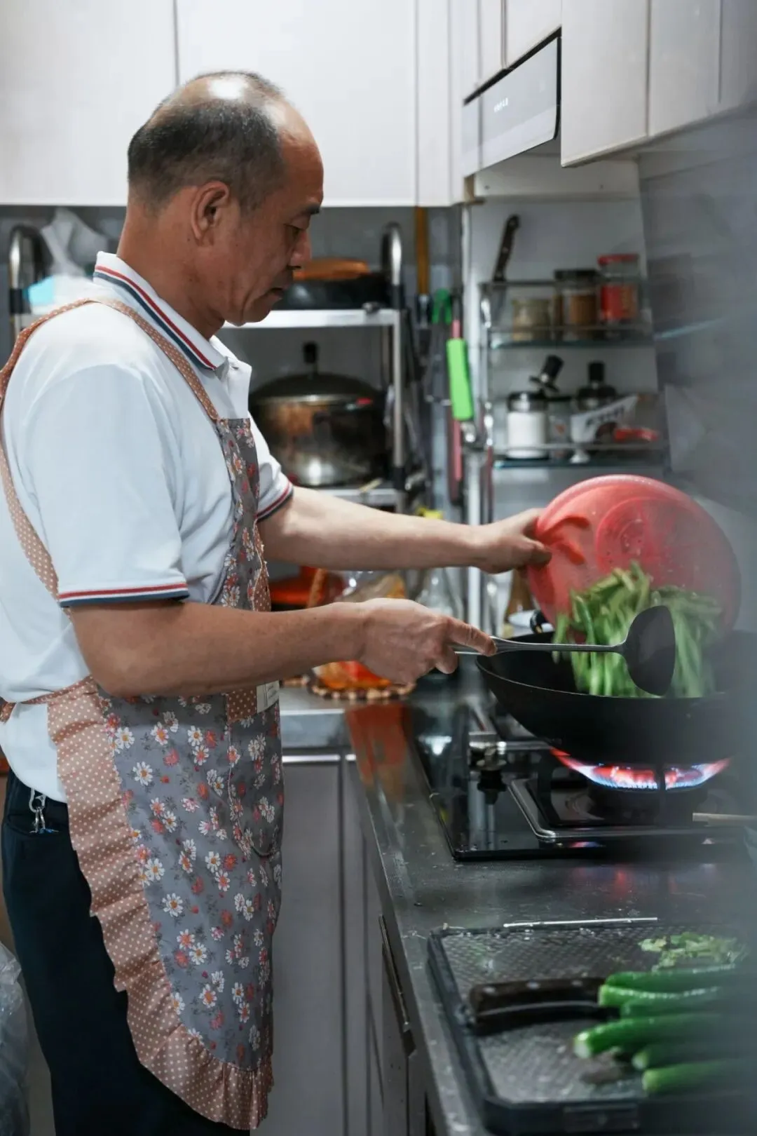 妻子负责孩子的早餐,照顾孩子的生活,他负责买菜做晚餐,料理日常家务,共同撑起一个完整的家。家人的理解,是他深夜坚守的底气;家庭的安稳,是他熬过无数子时温暖的动力。