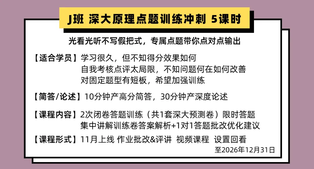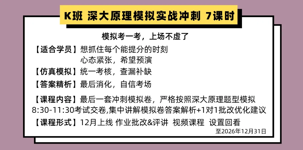 ①本课程为虚拟数字商品服务,购买成功后不支持退款,购买时请谨慎确认购买,不便之处敬请谅解②本课程购买后只支持唯一手机号登录,课程权限/资料一旦开通/寄出,不支持更换和转让,购买时请谨慎确认手机号码①2027届考研课程及服务有效期至2026年12月31日②课程资料将于开课前1周左右寄出,每次寄出前会再次统计收件地址报班后,请联系小坊主填写报名信息,本课程为实名制课程,请确认好再下单