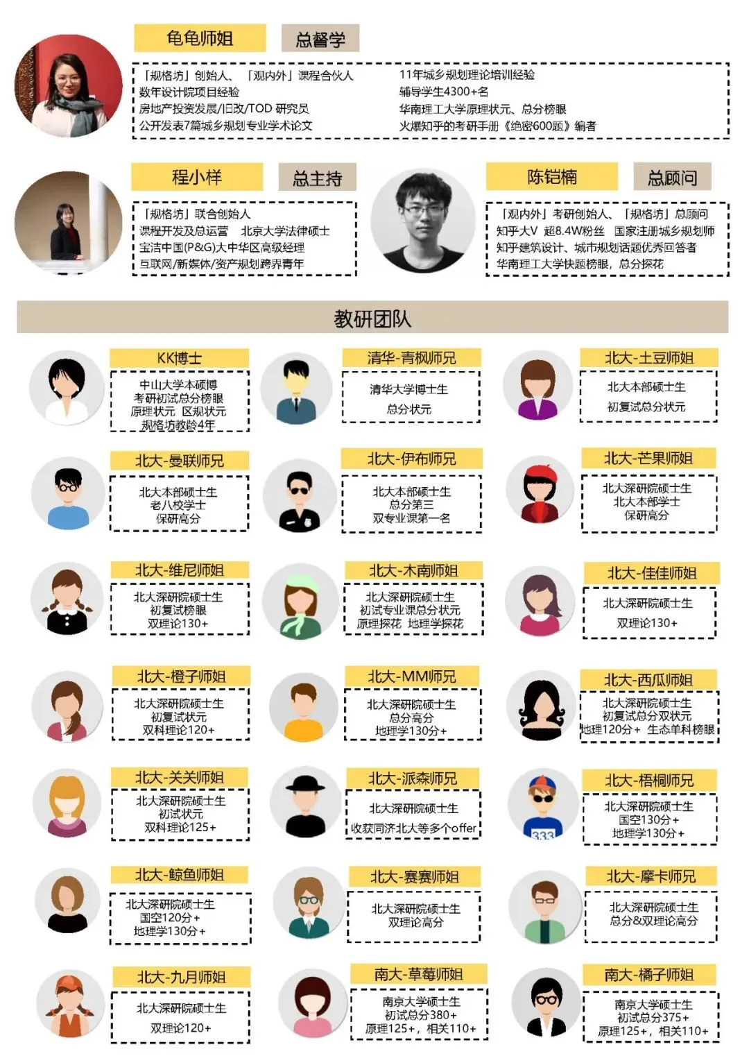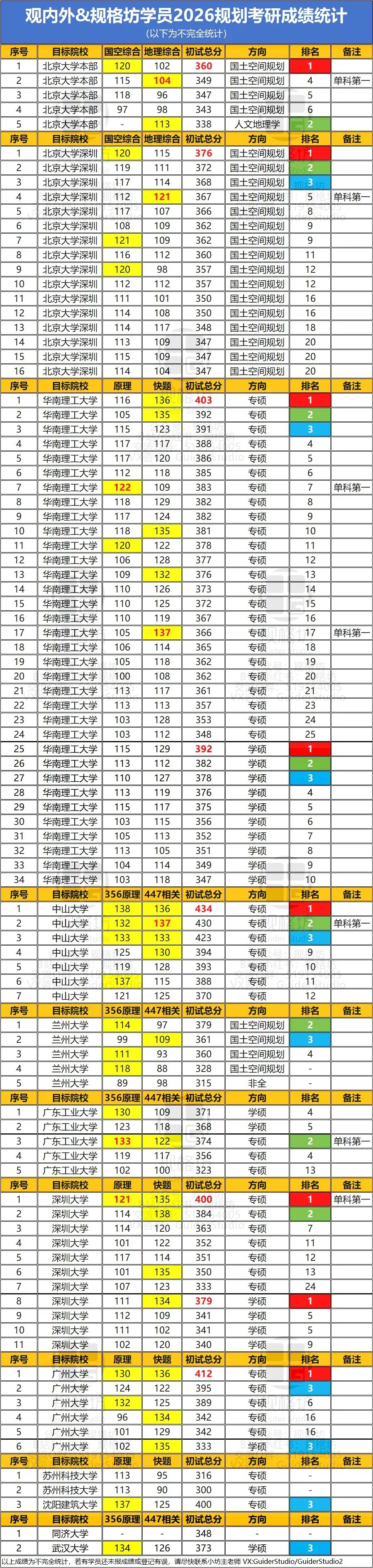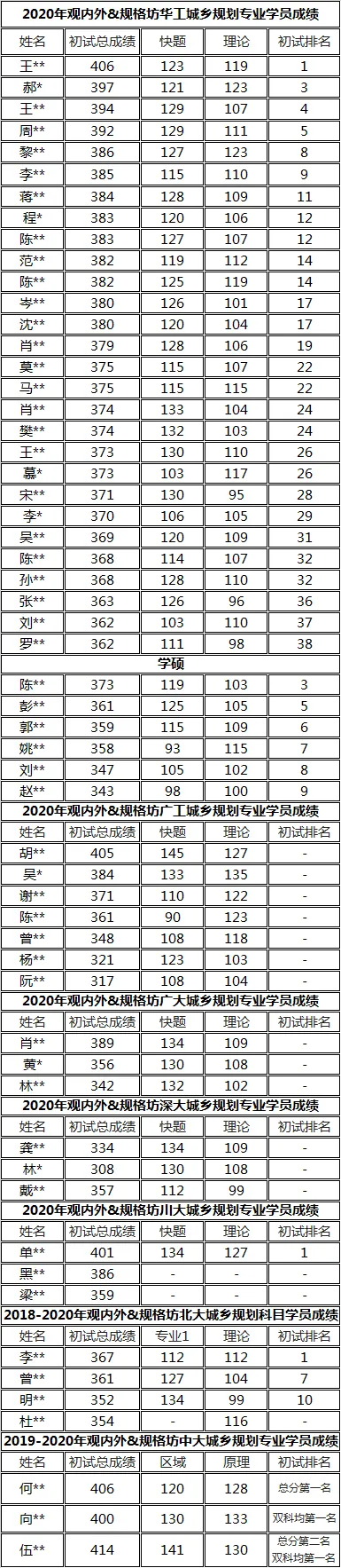 规格坊:创始于2020年,前身是「观内外」下属的城乡规划理论板块,过往培养出6届华工状元,以及中大北大川大等学校状元和超高分。从2020年开始,由聚焦华南到面向全国,打通理论共性,突破学校壁垒,联合更多优秀且有趣的人,一起打造城乡规划与人文地理的考研生态圈。观内外:全国艺术设计委员会手绘艺术研究中心副秘书长单位广东省环境艺术设计行业协会会员单位,教育专业委员会成员品牌历经12年的打造,开设专业课程班级近30个,培训学子数万名之众。▽近四年观内外规格坊学员深大成绩一览