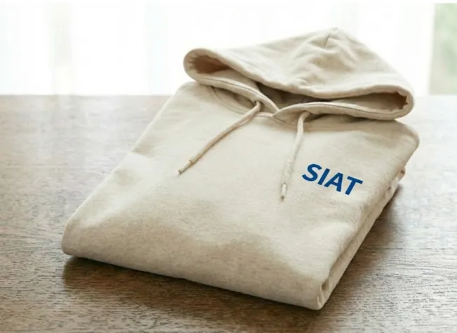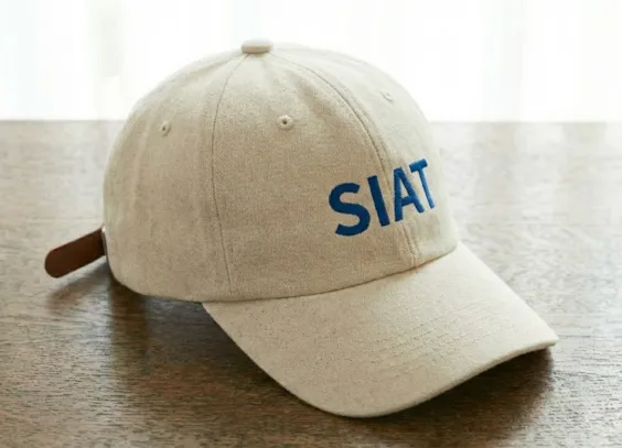 运动水杯:采用米白色哑光杯身,侧面点缀深蓝色“SIAT”英文字标,整体视觉清新且富有律动感。