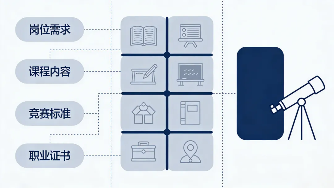 组建简易版“产业咨询小组”,吸纳企业技术人员、行业教师参与,每半年收集一次企业反馈、行业技术动态、竞赛标准更新、证书考核变化等信息,针对性调整岗位能力清单、课程内容、竞赛对接方向与证书绑定标准,确保体系始终适配产业需求,避免“一劳永逸”。