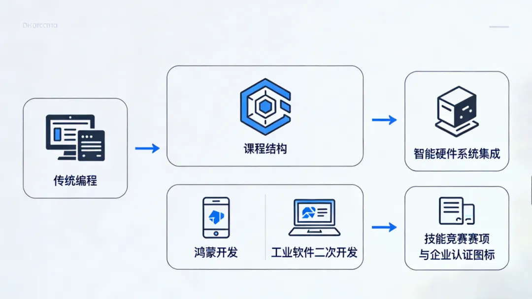 再如电子信息专业,岗位要求从“传统编程”升级为“智能硬件系统集成”,学校随即调整课程结构,新增“鸿蒙开发”“工业软件二次开发”等内容,同步对接对应的技能竞赛赛项与企业认证,实现体系快速适配。