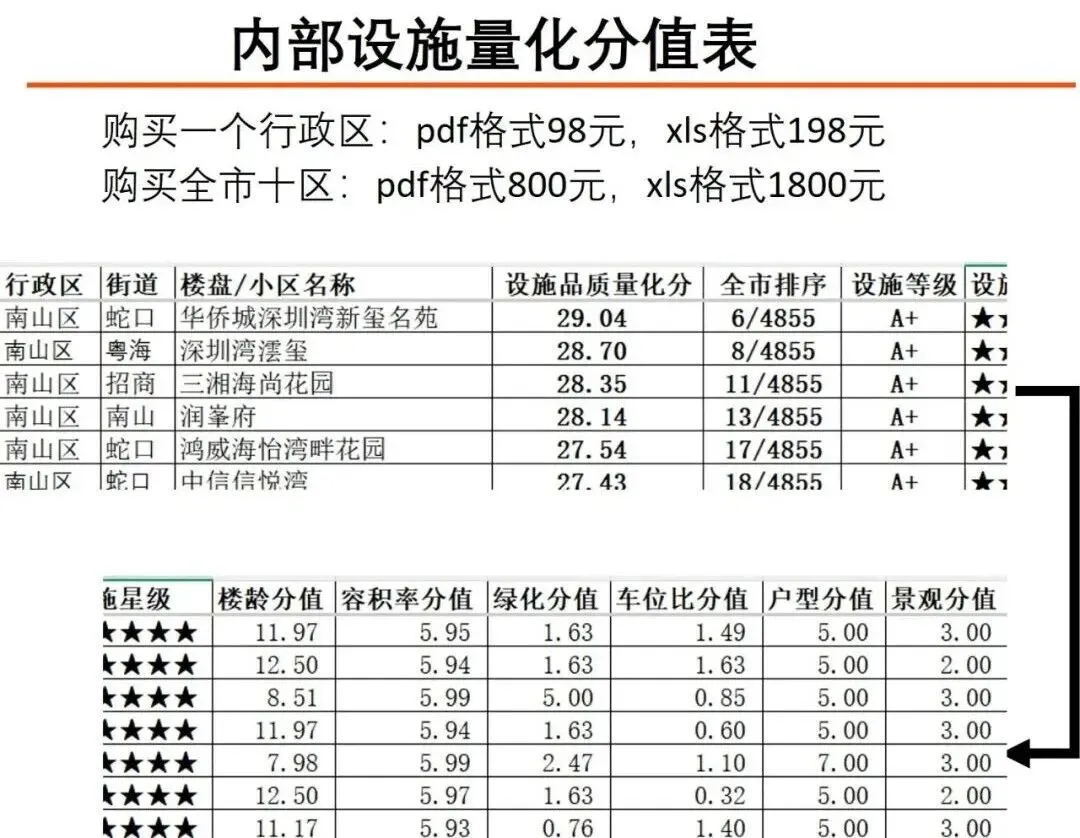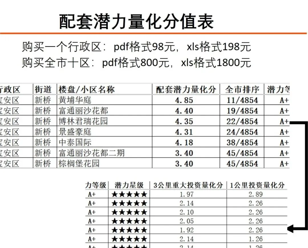 您可购买《深圳居住小区配套潜力量化分值表》,