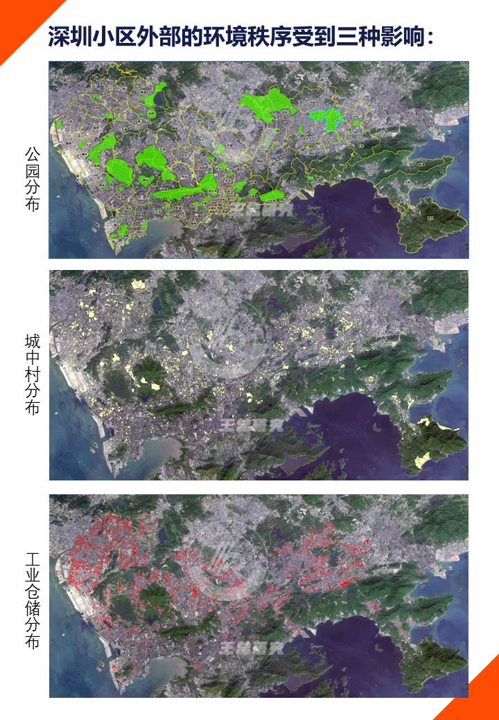 负面环境量化分:根据小区周边城中村和工业区数量,计算出的量化分,分越高、周边城中村和厂房仓库越少,