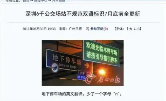 更令人尴尬的是,一些错误竟然存在了十多年。2026年3月,有市民反映,深圳会展中心一处通道的指示牌上,“Underground”被错拼为“Udergroud”。经查,同一问题早在2011年就被媒体曝光过。问题在2026年再次被揭露后,相关单位在半天内拆除了错误标识。