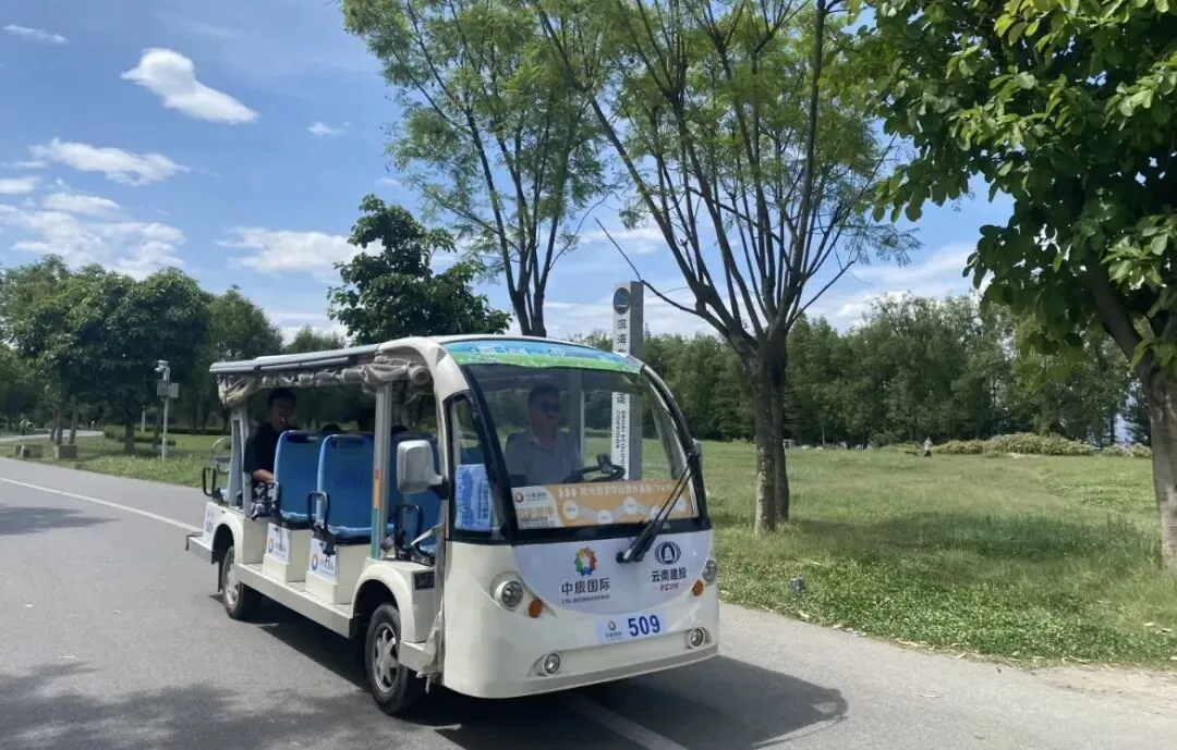:通常指电池驱动的摆渡车,最多6个座位(含驾驶员),用于景区、园区内游客摆渡
