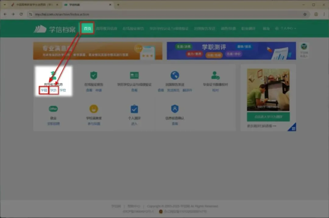 3、点击“进入学信档案”(未注册的需先注册哦)。