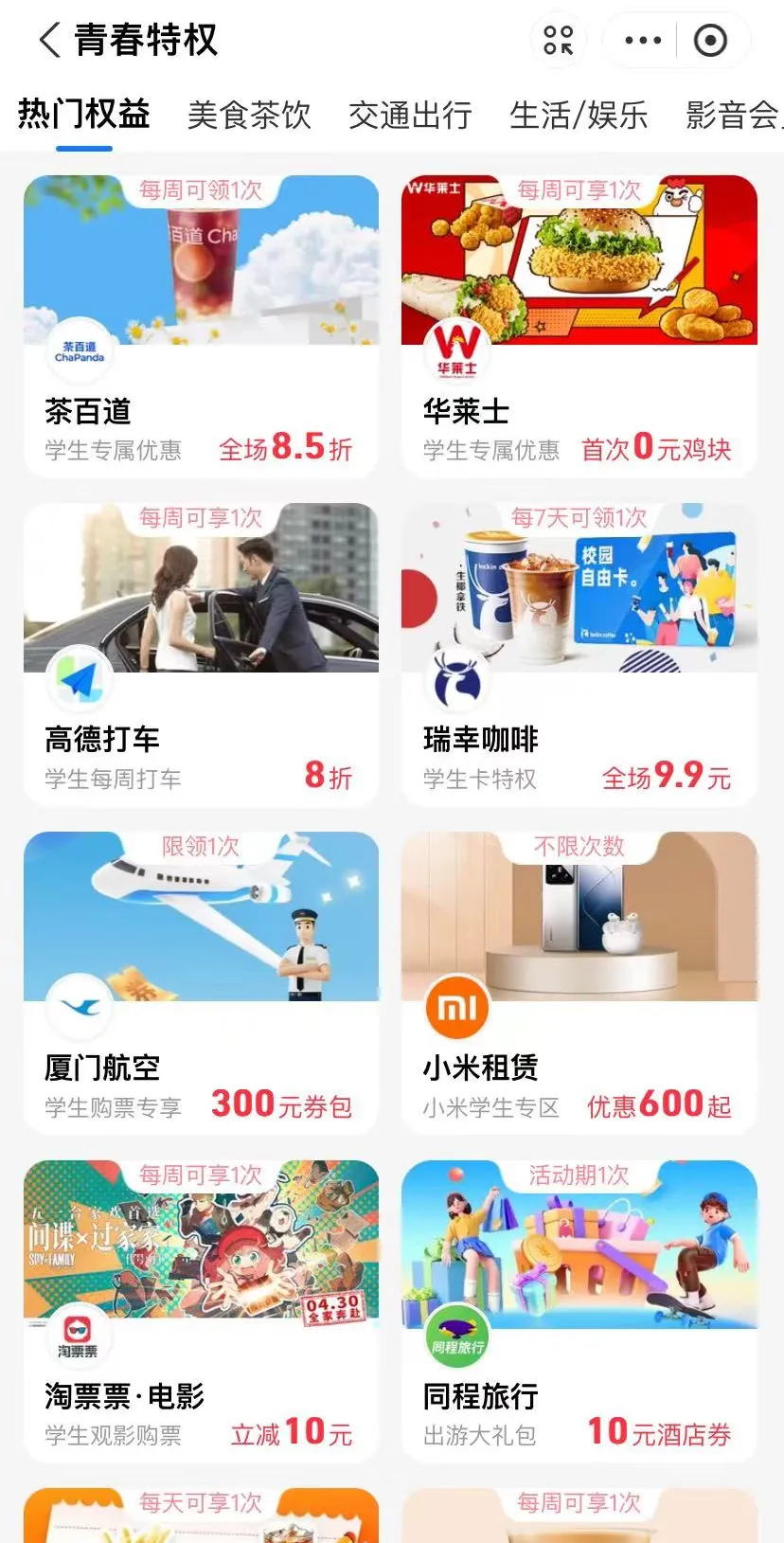 具体规则:在支付宝学生验证中,上传成人高考录取通知书、学生证、或验证学信网即可享受以下福利。