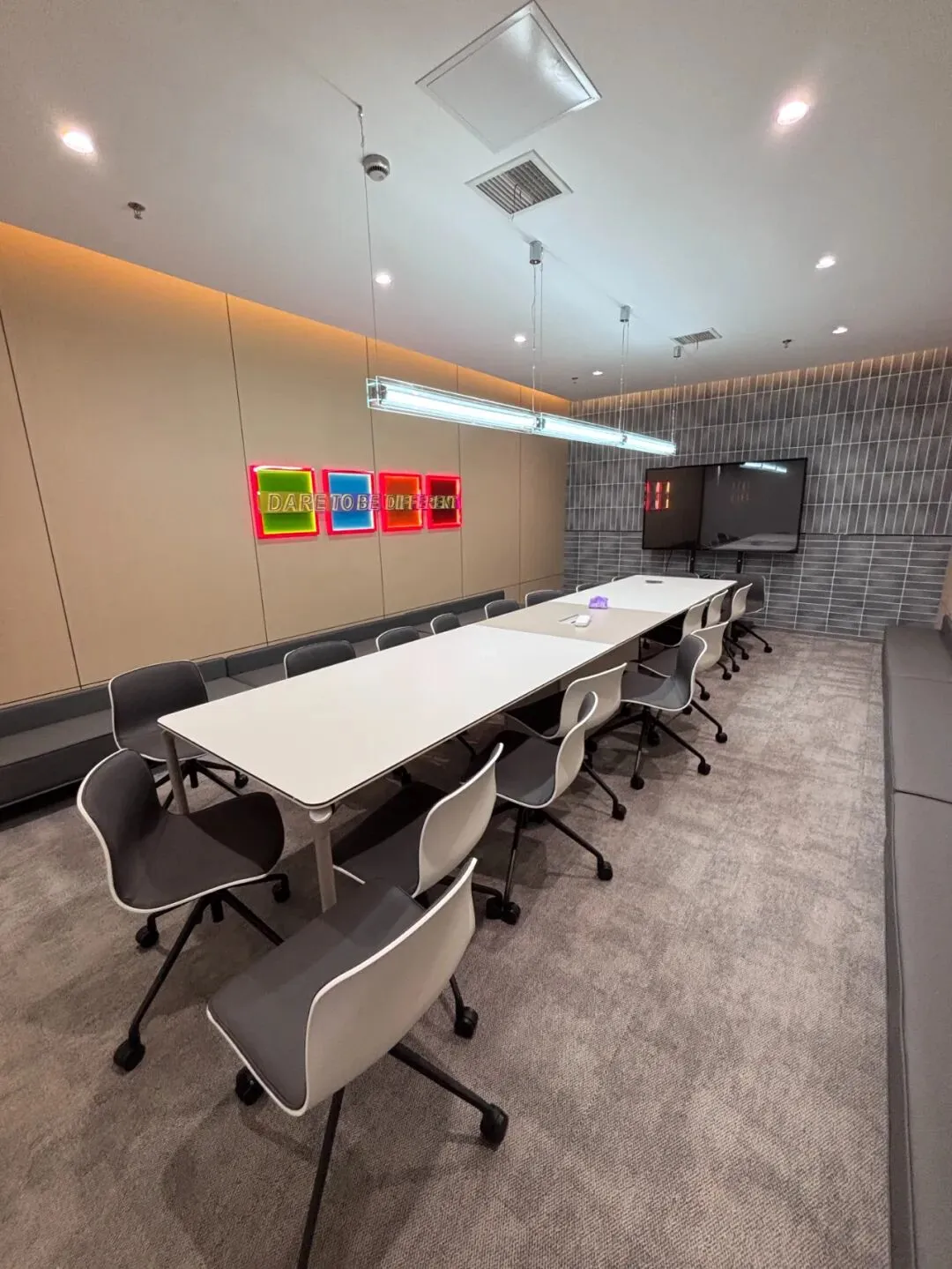 • 环境舒适:中央空调恒温、人体工学座椅,长时间开会不疲劳,装修简约大气显专业