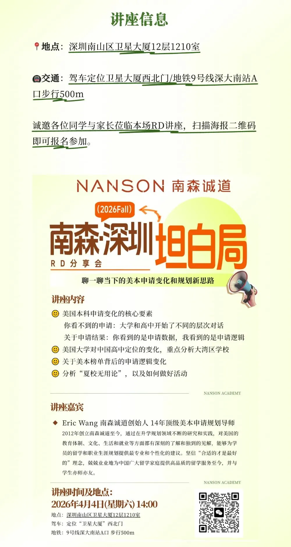 扫码添加南森小助手,获取更多美本留学择校资讯、申请规划、过往案例、独家数据、讲座活动等优质内容,免费预约一对一咨询!