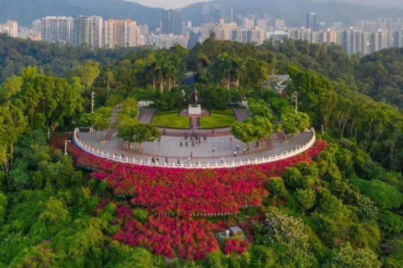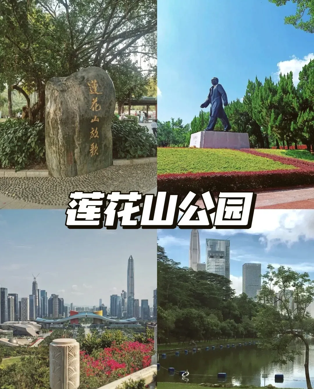 中午享用午餐(含),后前往【莲花山公园】,目前是深圳市内最高的室外广场,山顶广场是广大市民和国内外来宾缅怀一代伟人风采、登高望远、放风筝、眺望深圳市中心区的最好去处。邓小平铜像矗立在广场中央,铜像高6米重7吨,为青铜铸造,基座高3.68米。塑像的造型为具有动感的 、邓小平同志大步向前走路的姿态。铜像由白澜生等四位著名雕塑家集体创作,上海造船厂铸造。江泽民同志为铜像题字,并于2000年11月14日亲自为铜像揭幕。