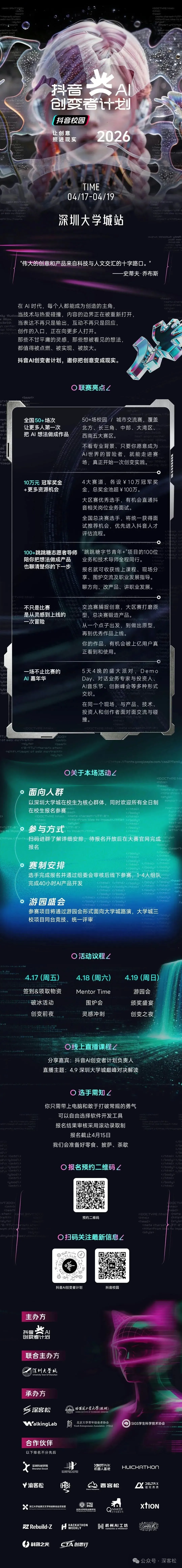 >抖音AI创变者计划2026黑客松联赛·深圳大学城站报名开启!