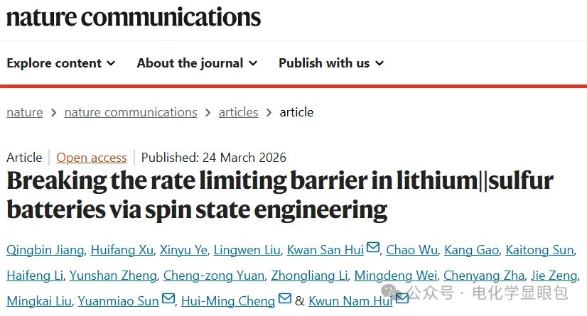 Breaking the rate limiting barrier in lithium||sulfur batteries via spin state engineering. Nature Communications, 2026;