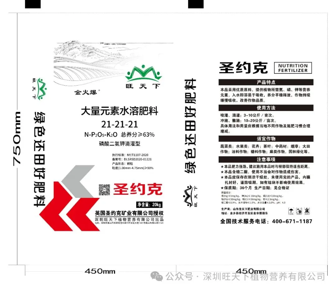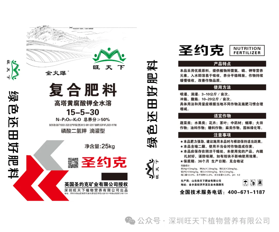 本产品采用的生产工艺为物理生产法,用优质硝酸钾及高纯度硝铵磷、磷酸二氢钾等全水溶性原料生产,应用电脑配方,配比科学、合理,具有溶解性好、吸收快、利用率高的特点,能显著提高作物产量,改善作物品质,适用于喷灌、滴灌、冲施等,便于实现水肥一体化,达到省水省肥省工的效能。特别适用于瓜果、蔬菜(果实类)等忌氯喜钾经济作物果期追肥用,每亩每次施用2-3千克,间隔10-15天追施一次。