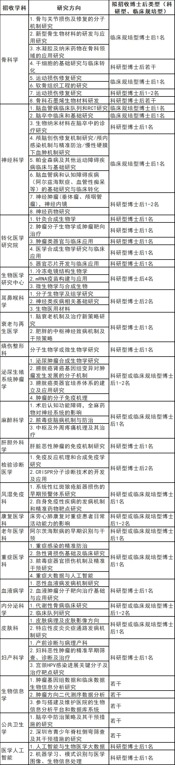 附件:深圳市第二人民医院2026年博士后招收计划表