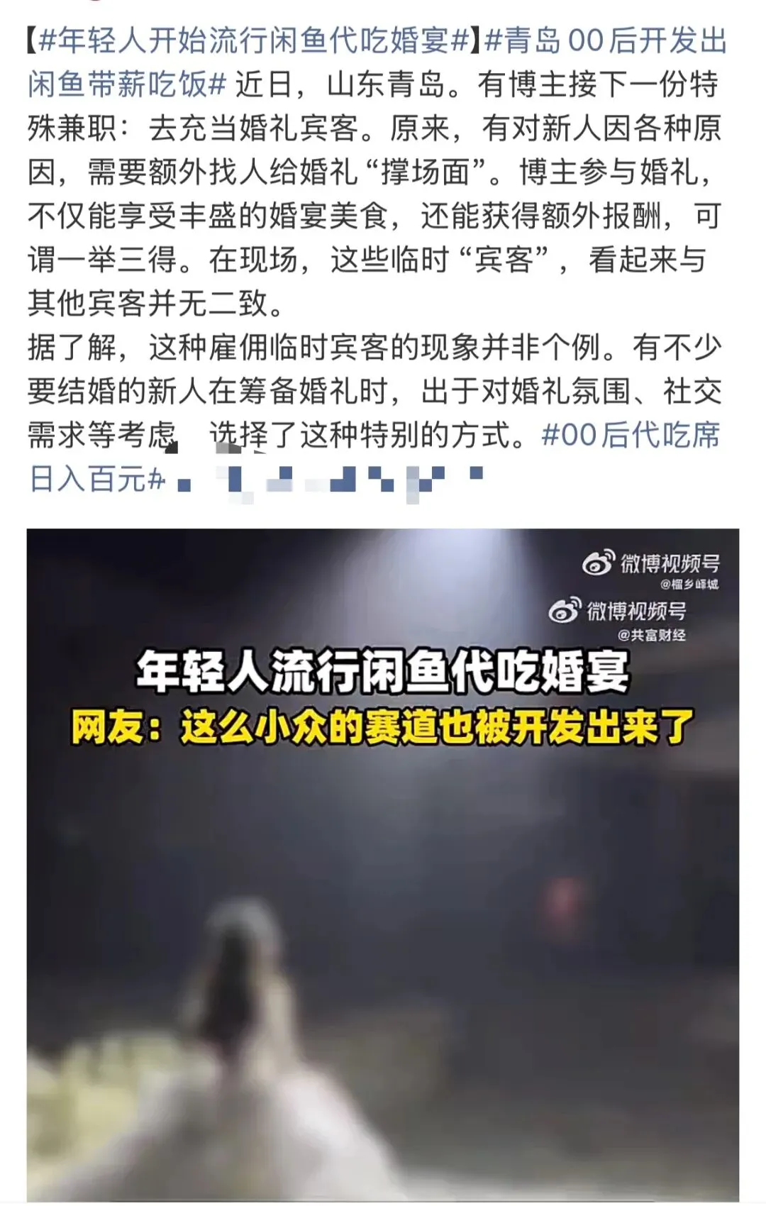 到现在代吃席或者是伴娘兼职...