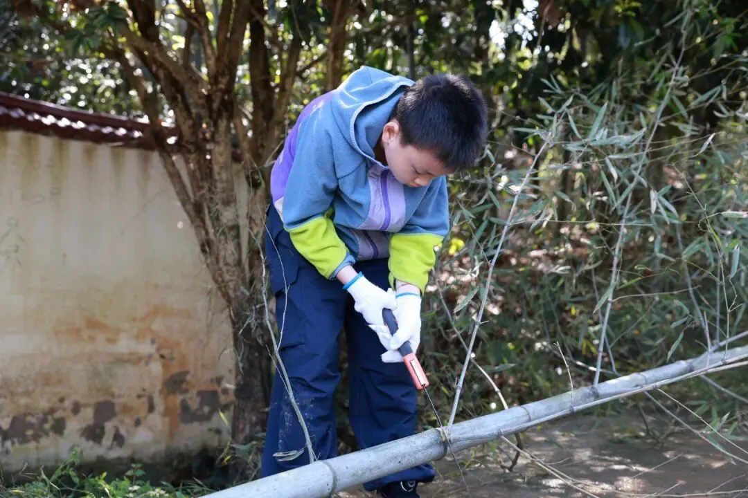 薛楚衡同学学着割竹子