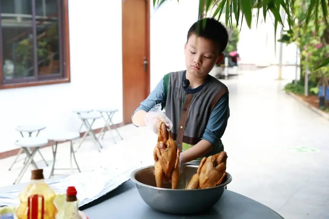 薛楚衡同学学着制作窑鸡