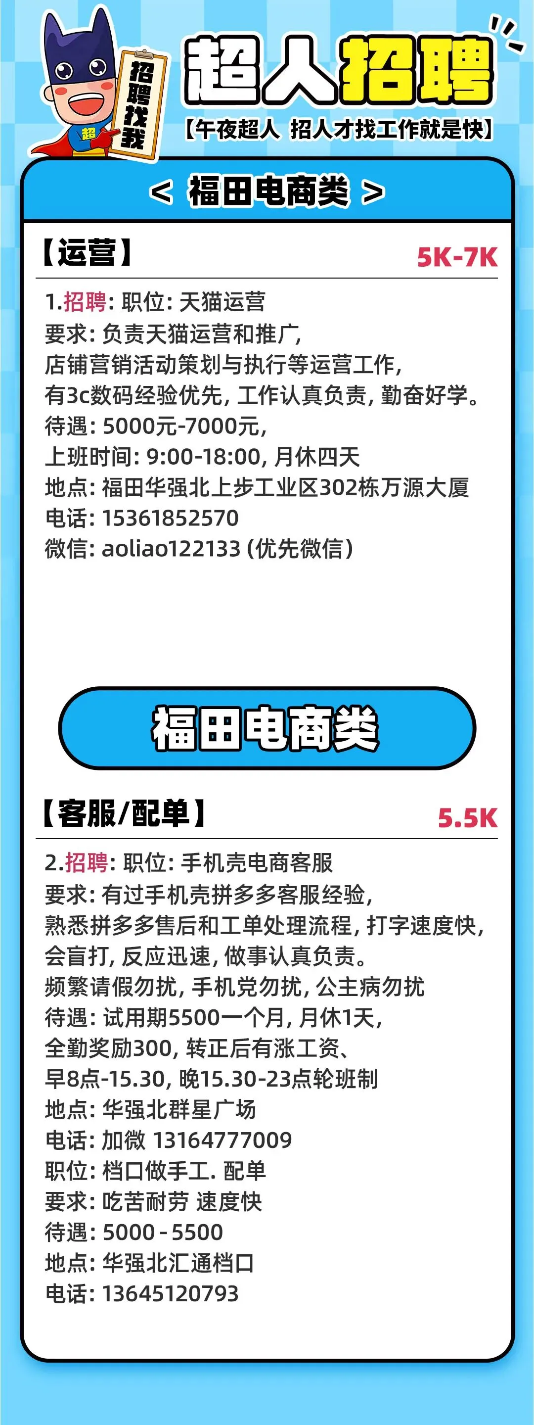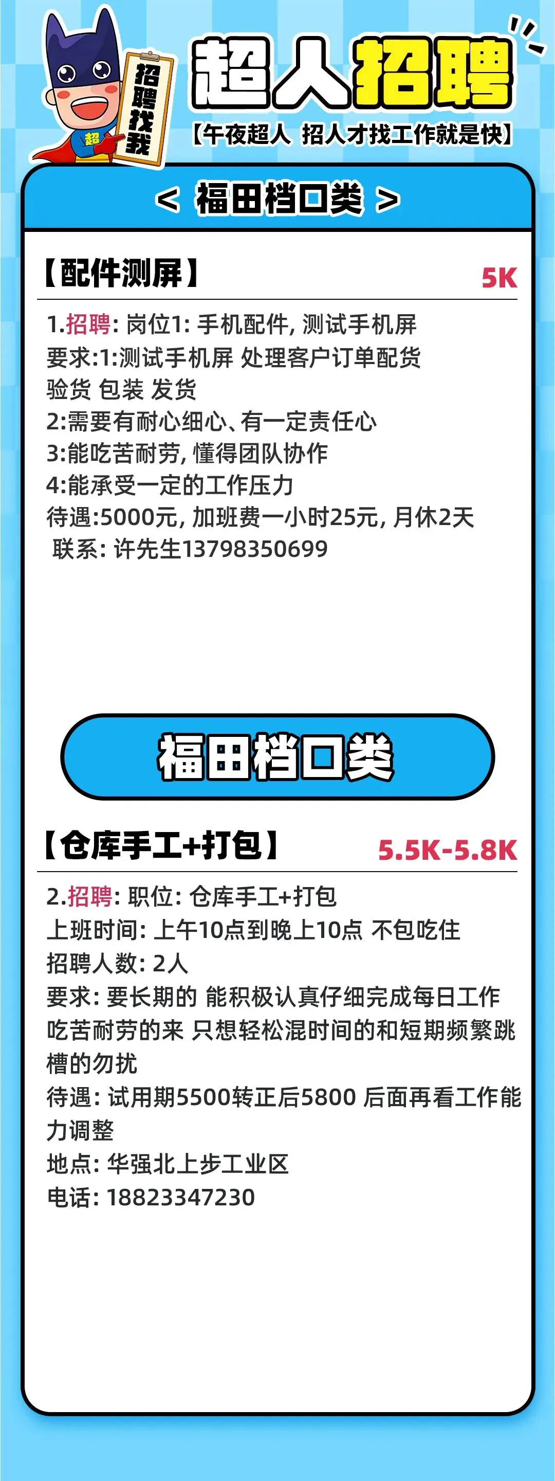 3月8号 峡山招聘