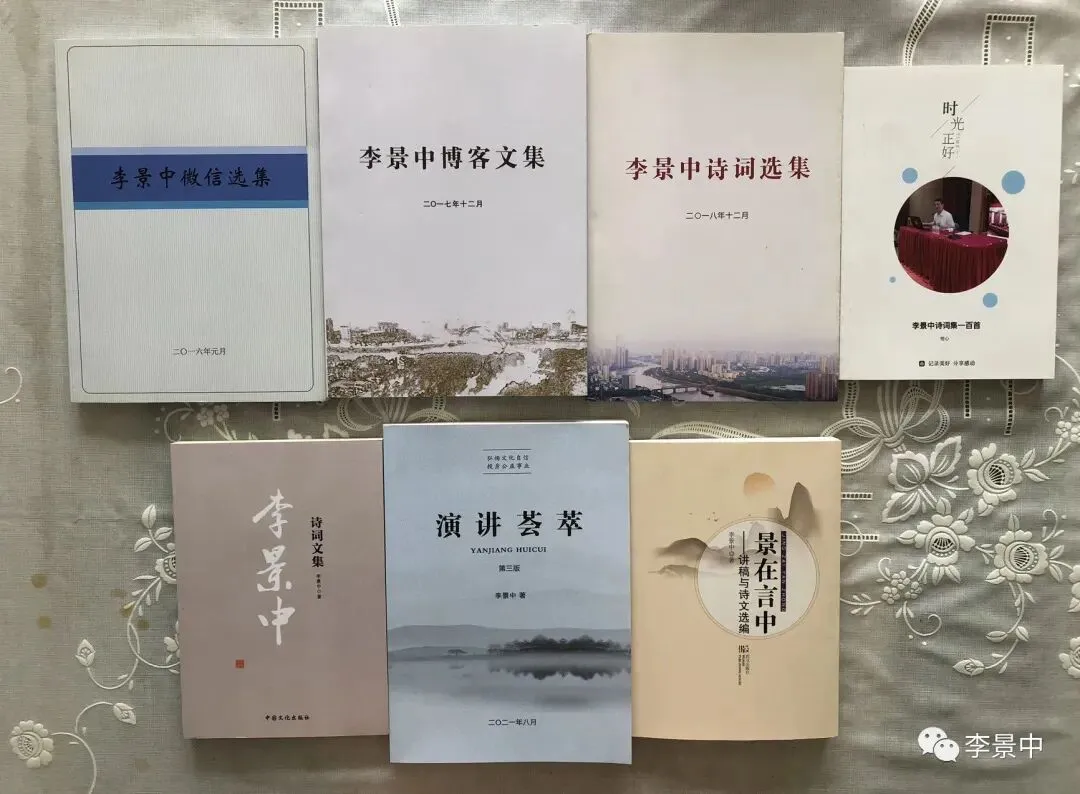 由武汉出版社出版发行的李景中专著《景在言中》/讲稿与诗文选编,这本书里有作者生活、学习、工作的感悟;有作者40多年来说话真,悦耳;做人诚,想念;做事精,超值的经历、阅历和资历;还有作者走红道,跟党走,听党话职务不断上升,从科员做到武汉市管正局级领导干部;走白道学技术,职称不断上升,从技术员做到正高职工程师、高级经济师的奋斗和拼搏;走商道,任5家国企领导人,企业营销、税收、利润连年增长,被评为武汉市最佳领导干部,念就5本生意经的故事。