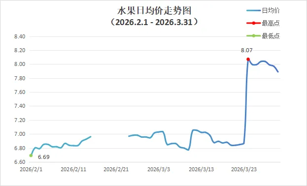 3月份深圳市场国产水果整体批发均价为7.21元,整体均价较2月份环比上涨4.88%。
