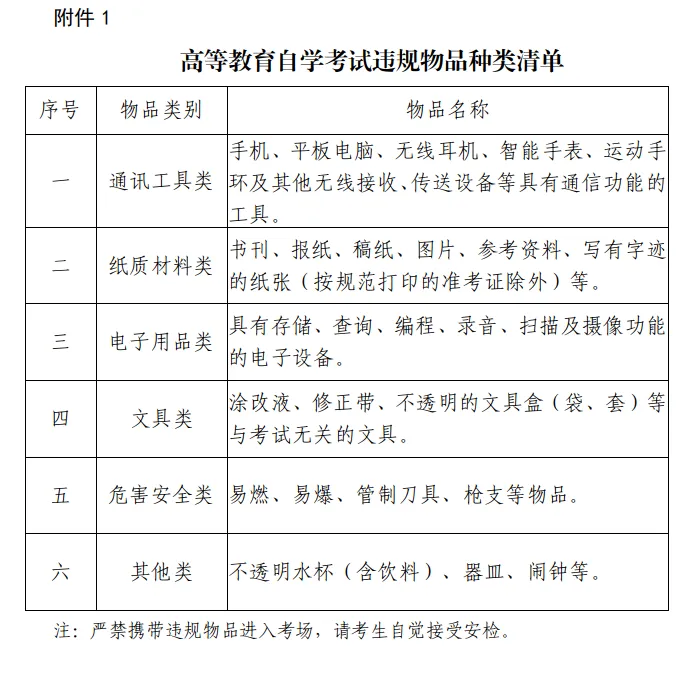 请考生准备好考试需要的相关文具,如2B铅笔、黑色字迹的钢笔或签字笔、马克笔、直尺、三角板、圆规、橡皮擦等,除必要文具之外任何物品不准带入考场(《高等教育自学考试违规物品种类清单》见附件1)。严禁携带任何通讯工具、电子用品以及与考试无关的物品进入考场。