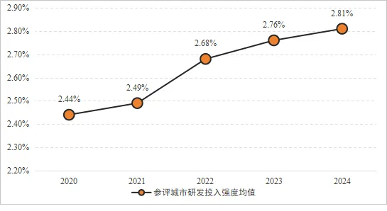 企业创新主体地位更加突出。各参评城市大力推进科技创新与产业创新深度融合,加快发展新质生产力,强化企业科技创新主体地位,推动科技成果向现实生产力转化。问卷调查显示,77.28%的企业以自主研发为主要创新方式,同比上升11.69个百分点。截至统计期末,参评城市平均研发投入强度达2.81%。新增发明专利授权量同比增长12.68%;拥有国家中小企业特色产业集群176个、国家级科技企业孵化器988家和备案众创空间1501家,分别占全国44.33%、61.52%和63.17%。与此同时,数字化转型稳步推进,49个参评城市中小企业数字化水平评测得分进一步提升,反映自身已开展数字化转型的企业比例达47.45%。