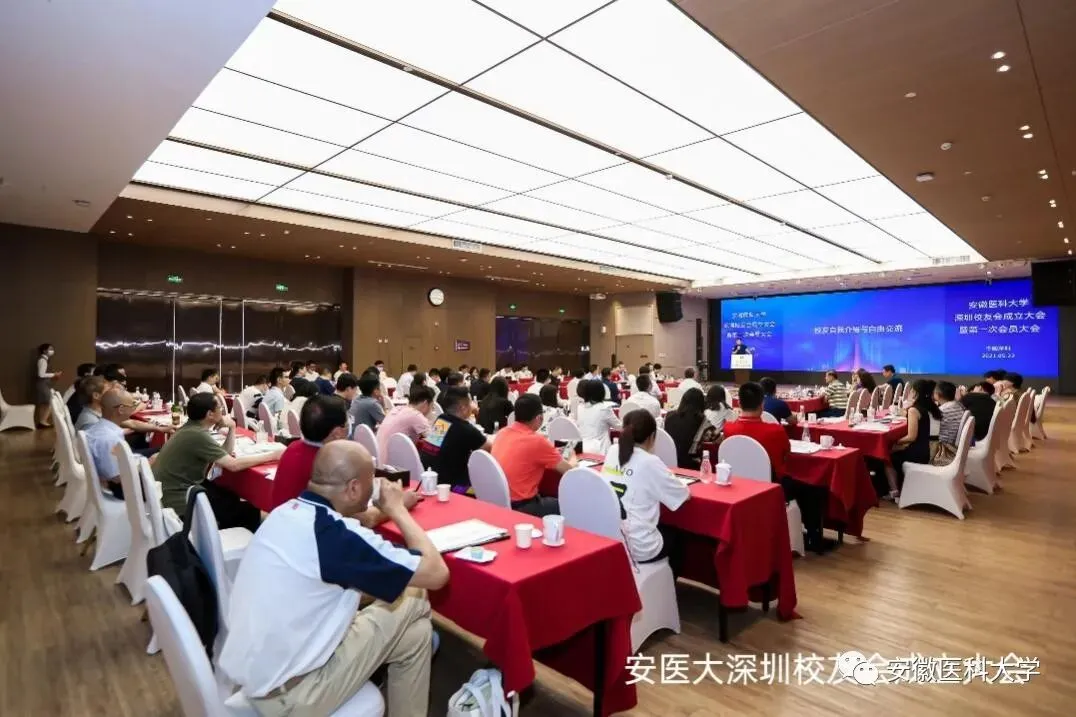 5月22日下午,安徽医科大学深圳校友会在深圳市人才研修院举行,本次会议采取线下会议和线上直播相结合的形式举行,安徽医科大学在深圳校友会100多人现场参会,深圳市安徽商会、清华大学和南开大学深圳校友会代表到会祝贺,2000多位母校领导、师生、各地校友与关心安医大发展的各界友人线上参会。